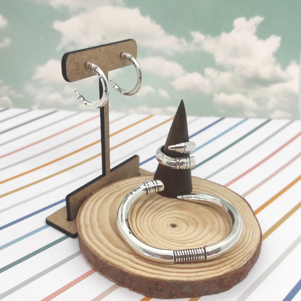 -Conjunto de anillo, pulsera y pendientes en forma de lápiz HB: Originalidad pura en un sólo detalle. Y es que no hay nada más top que lucir este conjunto tan divertido mientras esté en clase. También puedes hacerte con el anillo de manera individual.