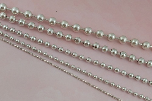 En La Fermina disponemos de una variada gama de cadenas bolas en zamak con baño de plata de alta calidad, con distintos tamaños en las bolitas para adaptarse a tus diseños.