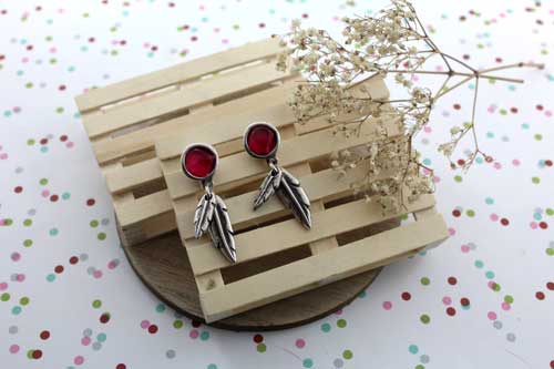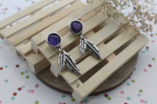 Abalorios: 2 colgantes hoja de zamak de 15 mm , 2 colgantes hoja de zamak 20 mm , 2 anillas 6 mm y 2 pendientes con cabujon de 8 mm.