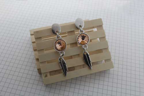 Abalorios: pendientes ovalados , 4 anillas 6 mm , 2 colgante hoja de zamak 20 mm y 2 entrepiezas con rivoli.