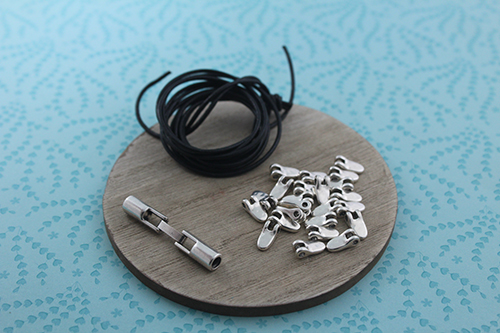 Tenemos nuevas entrepiezas en la web: Entrepieza diente de 11 x 5 mm y Entrepieza diente de 8 x 4 mm. Con ellos hemos creado este original collar cuero en trenza. Para decorarlo hemos ido colocando entrepiezas diente de 11 x 5 mm. Puedes apretar más o menos el cuero según te guste a la hora de trenzarlo.