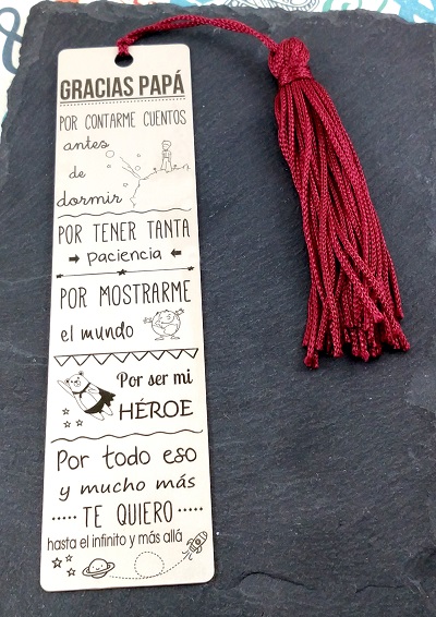 Te proponemos regalos que llegan al corazón por su capacidad de hacerlos únicos, con mensajes totalmente personalizados. Te damos opciones para todos los gustos, como marcapáginas para los papás que les gusta desconectar con un libro. También, ¿qué tal una pulsera para los más modernos? o, si no, un llavero con el que seguro acertaremos de pleno.
