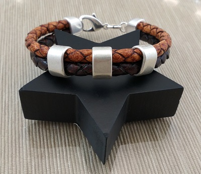 Componentes: Cuero Trenzado, Pasador, Terminales, Cierre, Anilla baño de plata y Anilla ovalada