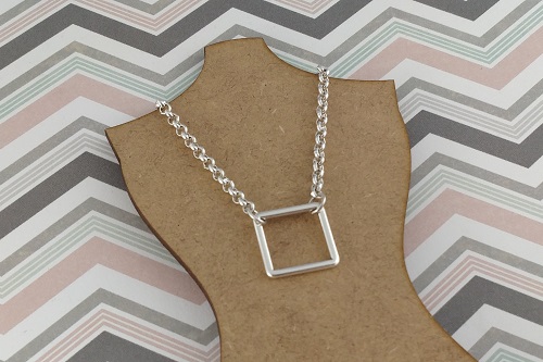 Diseños con Piezas Geométricas: Cadena Brillo con Colgante Cuadrado