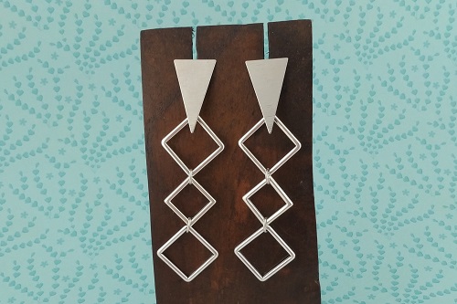 Diseños con Piezas Geométricas: Pendientes Triángulo con Colgantes Cuadrados