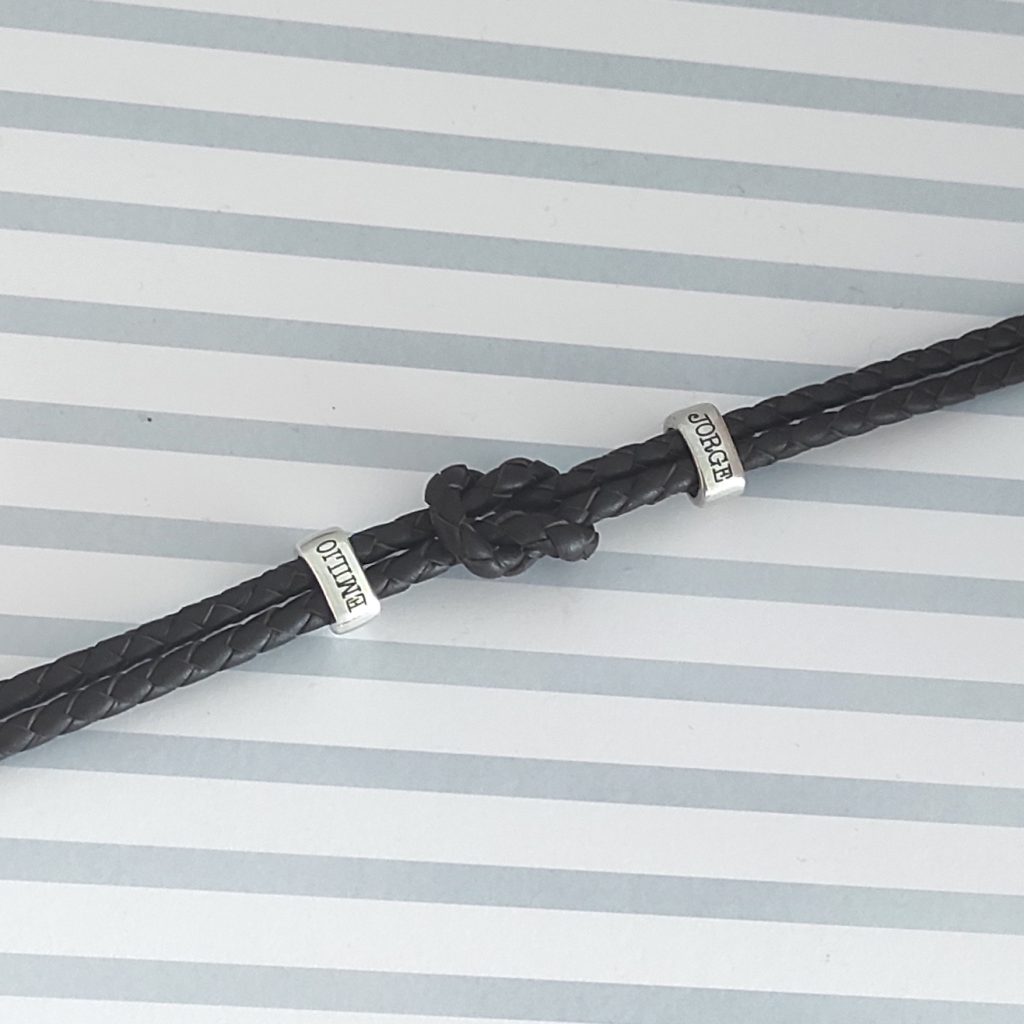 Además, si prefieres un diseño más sencillo, también tenemos pulseras de cuero con unos pequeños charms que puedes personalizar con las iniciales de tu padre o con tu nombre