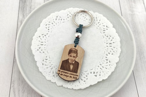Regalos Invitados Primera Comunión: Llavero Chapa Madera