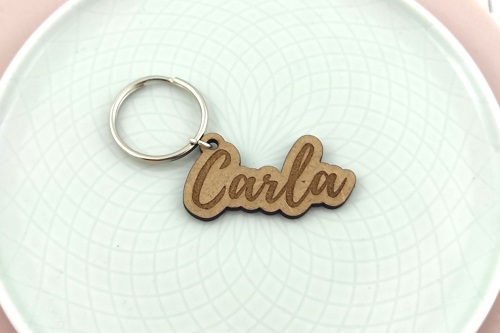 Materiales: Colgante nombre madera - Anilla redonda 8 mm - Anilla llavero 30 mm