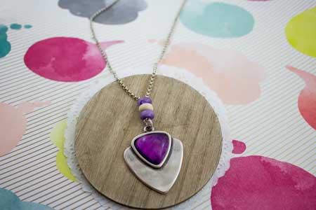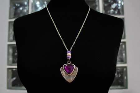 Abalorios: colgante flecha con piedra morada , donuts 7 mm taladro 2,5 mm , cadena alta calidad mini , 2 anillas 8 mm , anilla 6 mm y mosquetón de 12 mm.