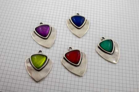 Abalorios: Antelina de 3 mm , pasador curvado de zamak, pasador tubo corto zamak , 4 pasador anilla ovalada 3 x 5 mm, 2 anillas de 8 mm , 8 anilla 6 mm , 2 terminales curvados taladro 2,2 mm, 2 terminales tubo 4 mm con taladro 3,2 mm, 1 pasador con anilla, 2 pasadores rondel triple y un mosquetón de 12 mm.