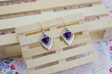 Abalorios: pendientes gancho hippie y charm flecha piedra morada.