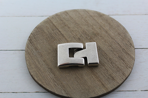 Para acabar, utiliza el pegamento hasulith especial para bisutería y joyería para pegar las tiras de cuero al cierre plano liso de zamak 20 mm.