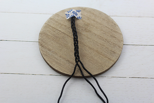 Corta el cuero de 3 mm en 3 tiras de la misma medida. A continuación repite el mismo proceso con el cuero de 1,5 mm. Ahora forma una trenza con los 3 cortes del cuero 1,5 mm. Te aconsejamos que hagas un pequeño nudo con los 3 cabos y luego lo sujetes con celo a una superficie plana para que te sea más fácil trenzar el cuero, cuando hayas acabado cierra la trenza con otro nudo.