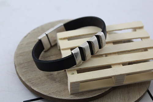 Abalorios: cordón cuero plano de 10 x 2 mm color marrón , pasador barras de zamak para cuero plano de 10 x 2 mm y cierre zamak imán 10 mm.
